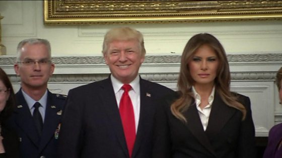 Mr Trump posed in the White House with his wife Melania as well as military leaders and their wives, after Thursday`s meetings but before dinner together. Gesturing at the people around him, he asked the waiting press if they knew "what this represents".